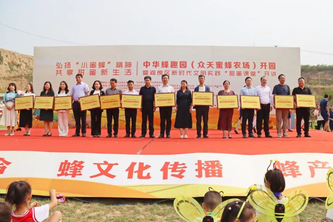 金秋送爽、硕果飘香。9月28日上午,阎良石川河中华蜂趣园(众天蜜蜂农场)正式开园。活动现场载歌载舞、笑语欢声,参加开园仪式的家庭代表、可爱的小朋友、相关单位同志及社会各界嘉宾共同见证了这一甜蜜时刻。